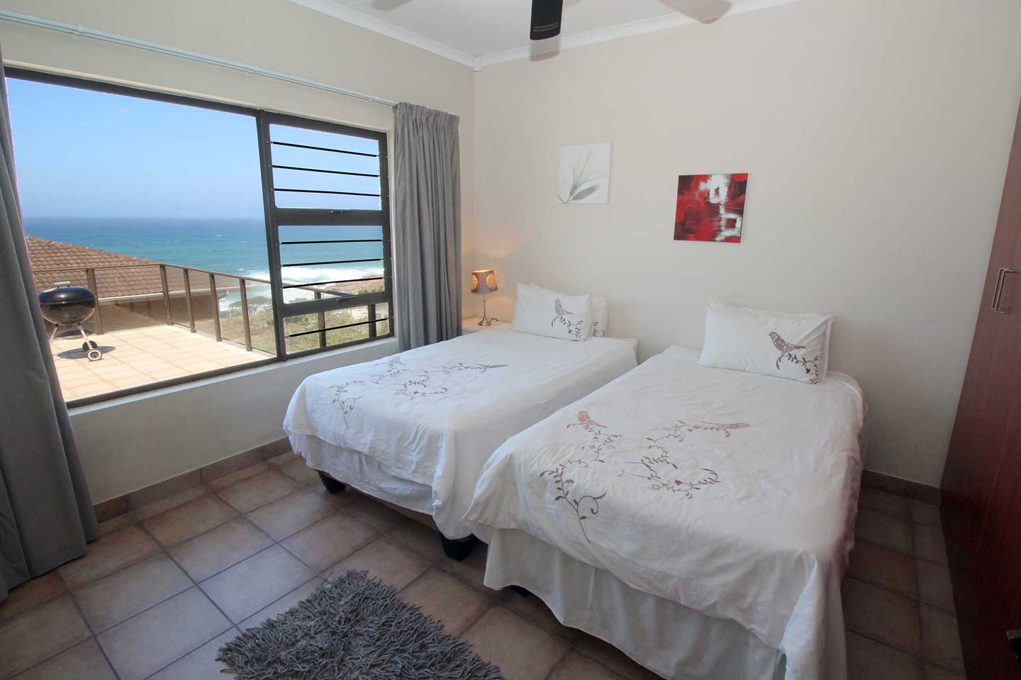 Castaro Beach Lodge is a spacious 4 bedroom self-catering holiday house  with 2 bathrooms in Ramsgate on the KwaZulu Natal South Coast. The house is equipped solar panels and backup storage, which provides electricity during load shedding. The solar system powers the essentials including the borehole (which supplies filtered water to the house), lights, television and most of the plug points. (The larger electrical appliances like the stove are dependent on ESKOM electrical supply). The apartment has ceiling fans in all the bedrooms to keep you cool in summer.
