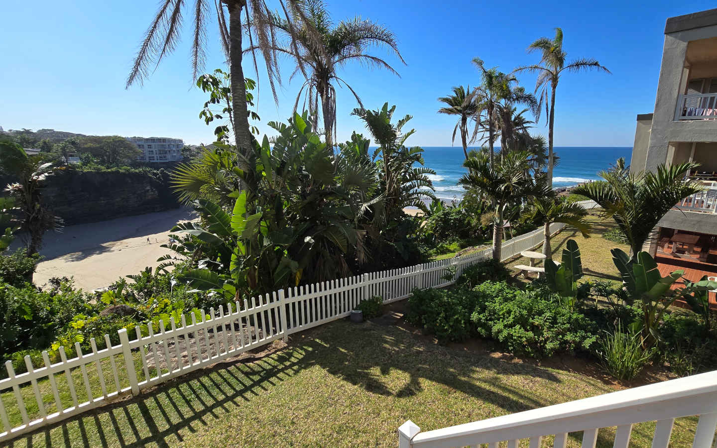What's Nearby: Uvongo Beach and Pier, waterfall and tidal pool, Lucien Beach, the Uvongo River Nature Reserve, the Uvongo Flea Market, Stephward Exotic Nursery, Douglas Mitchell Sports Grounds, forest trails, local shops, and restaurants.